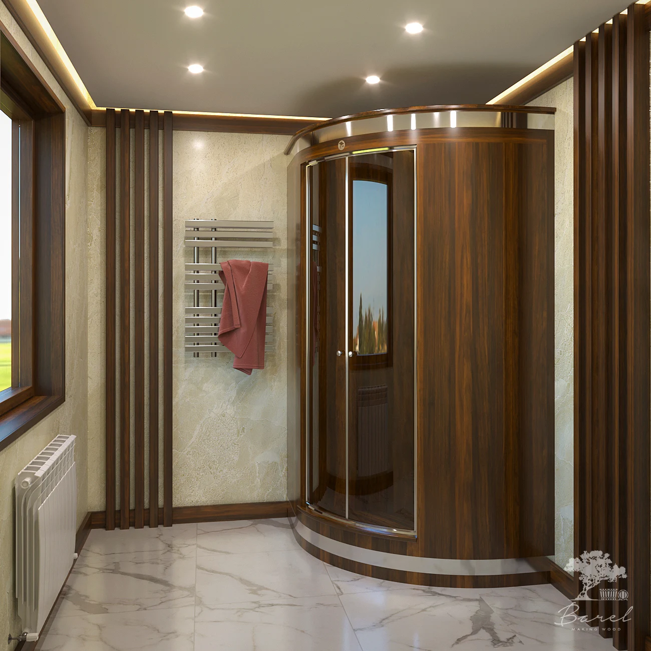 Изготовление душевых кабин из элитной древесины высшего качества на заказ любых форм и размеров!